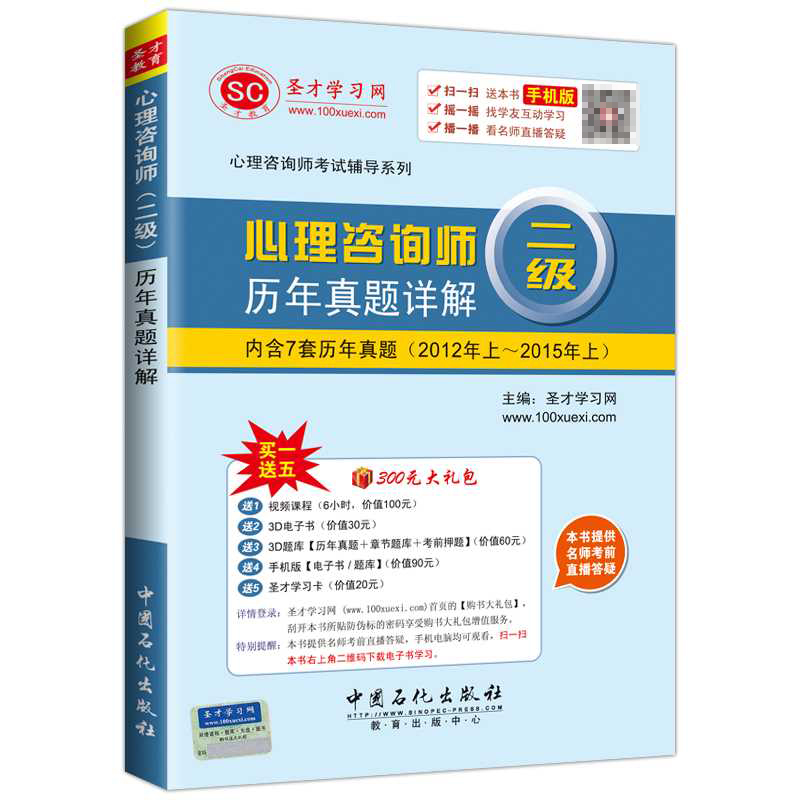 心理咨询师考试历年真题辅导新书上市,购书就送超值大礼包(高清视频课程、3D电子书、3D题库、手机版电子书题库、圣才学习卡),更有考前名师直播答疑,欢迎广大读者考生订购。