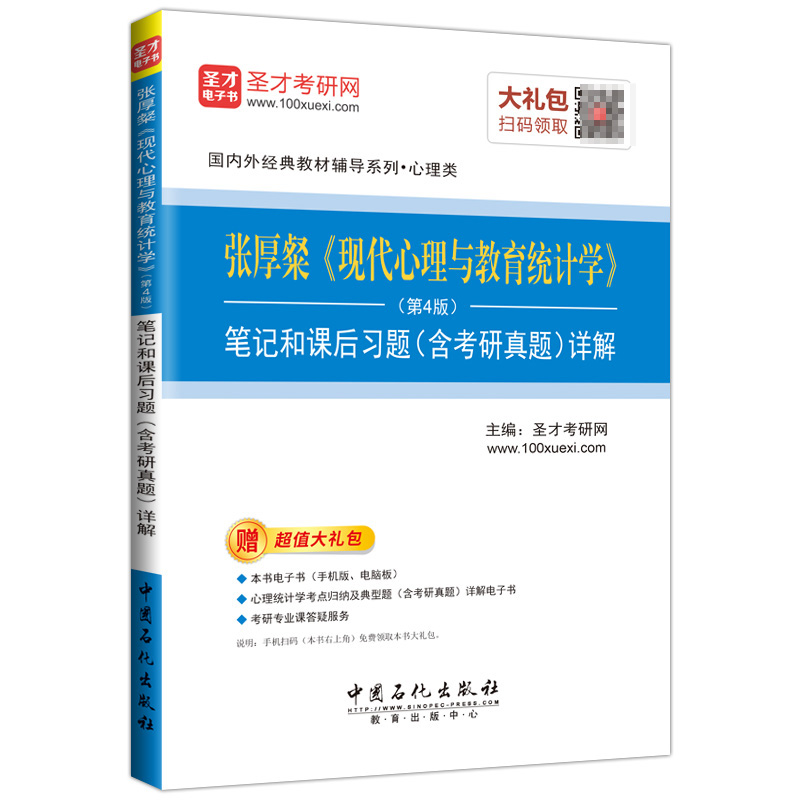 圣才考研网(www.100xuexi.com)提供张厚粲《现代心理与教育统计学》网授精讲班【教材精讲+考研真题串讲】、3D电子书、3D题库。购书享受大礼包增值服务【本书电子书+心理统计学考点归纳与典型题(含考研真题)详解电子书+考研专业课答疑服务】。手机扫码(本书封面的二维码),取本书大礼包。